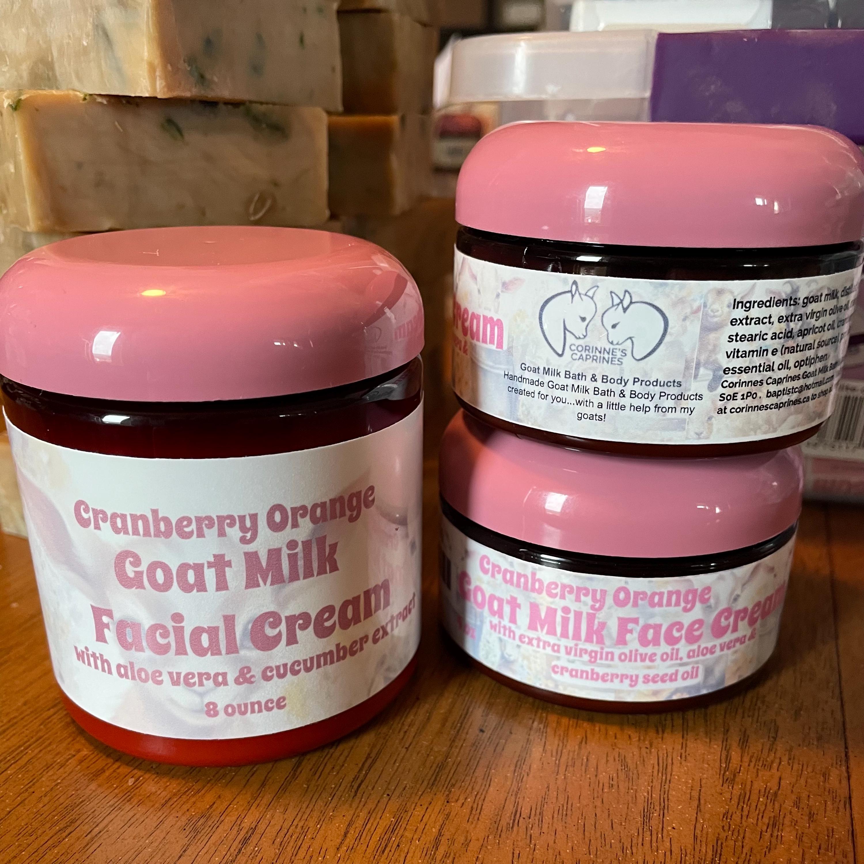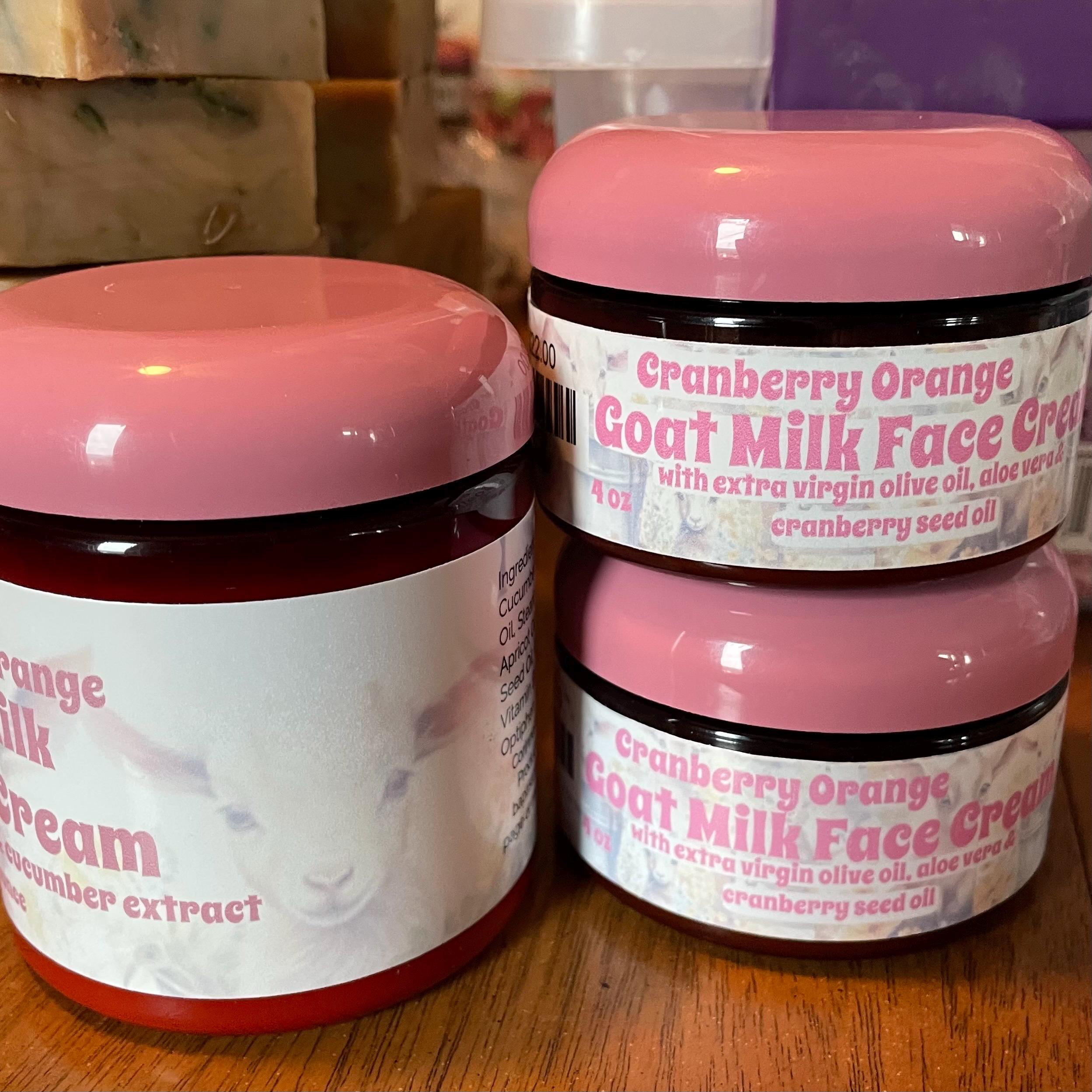 Ingredients: goat milk, distilled water, extra virgin olive oil, mango butter, emulsifying wax, stearic acid, apricot oil, cranberry seed oil, carrot seed oil, pro vitamin b5, cucumber extract, aloe, vitamin e (natural source), optiphen, sweet orange essential oil (cranberry orange option), certified natural fragrance (natural rose vanilla Cedarwood option)