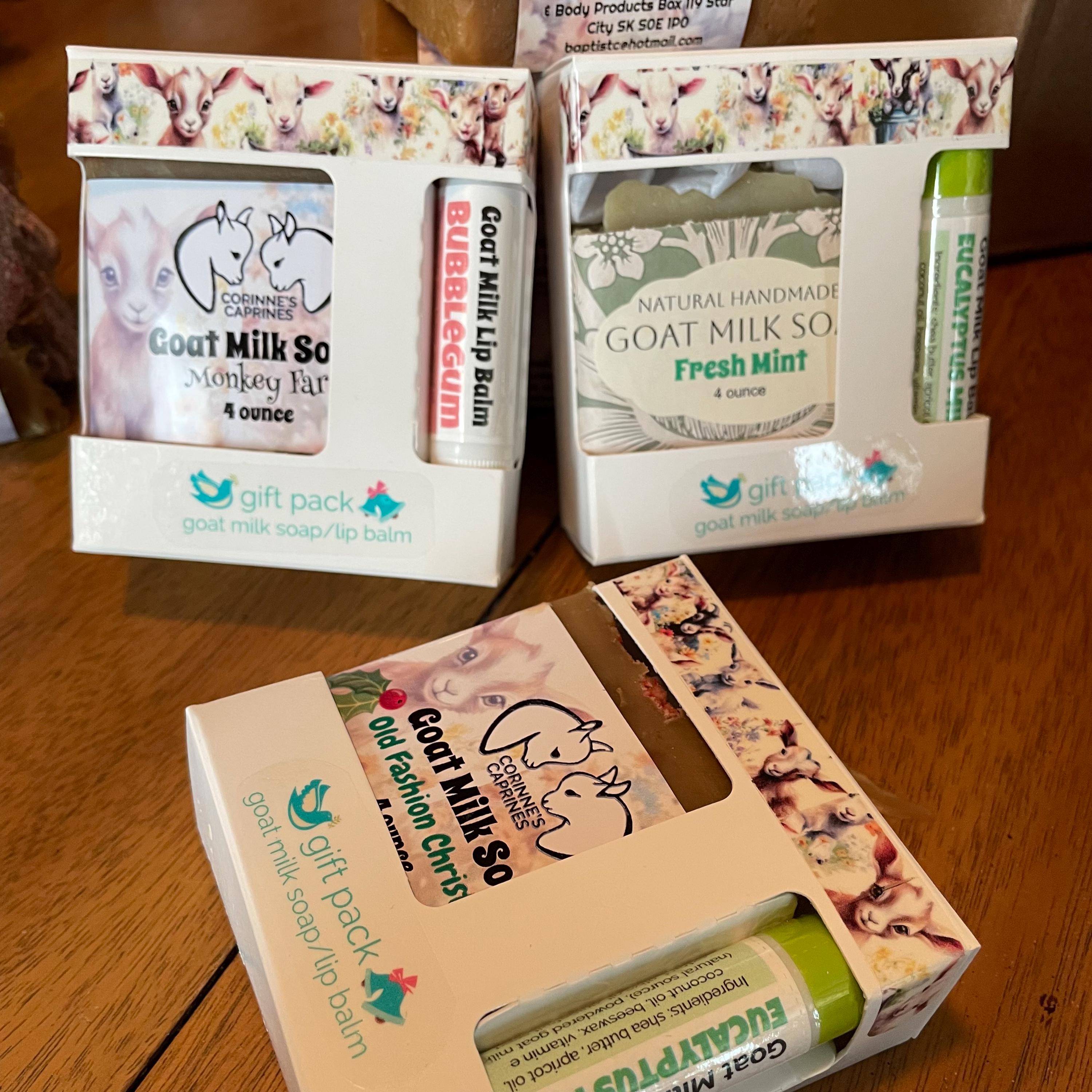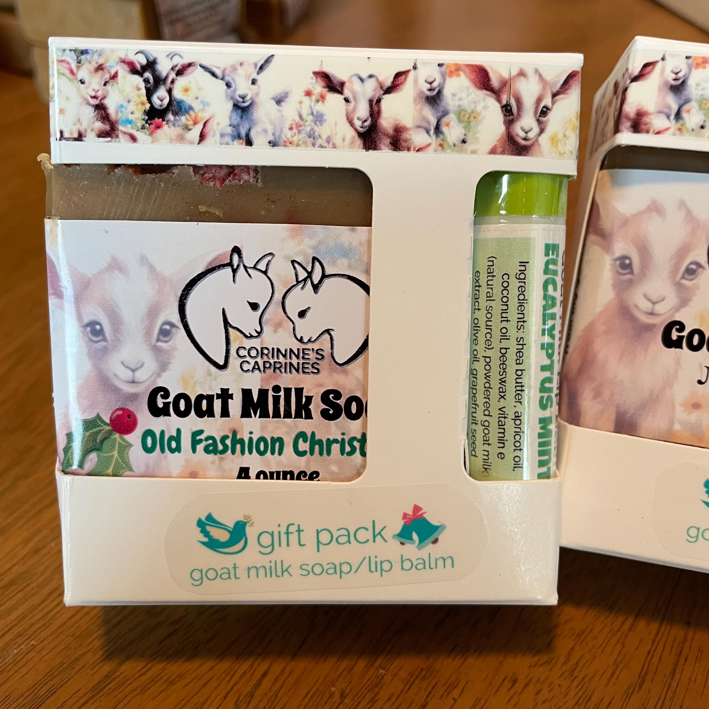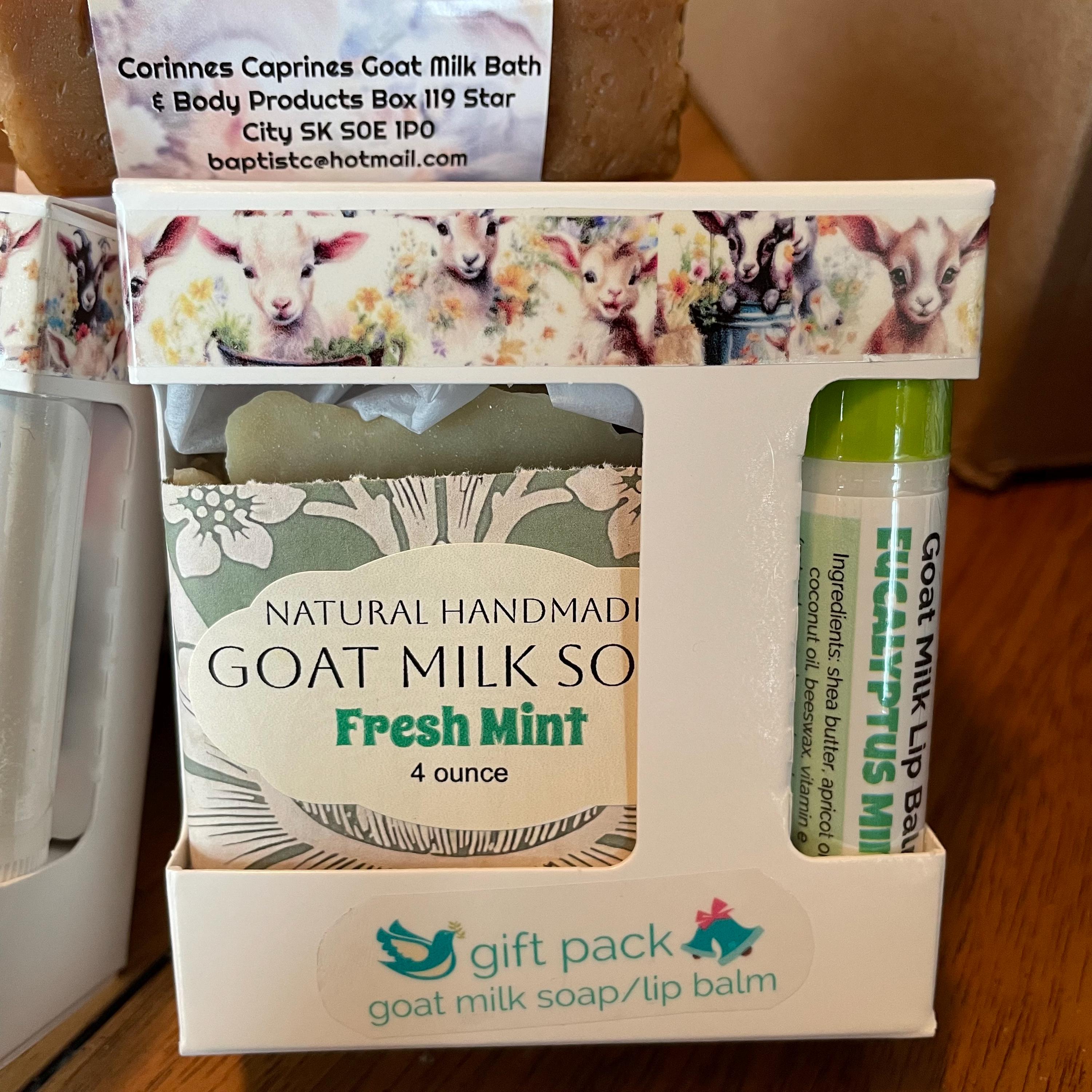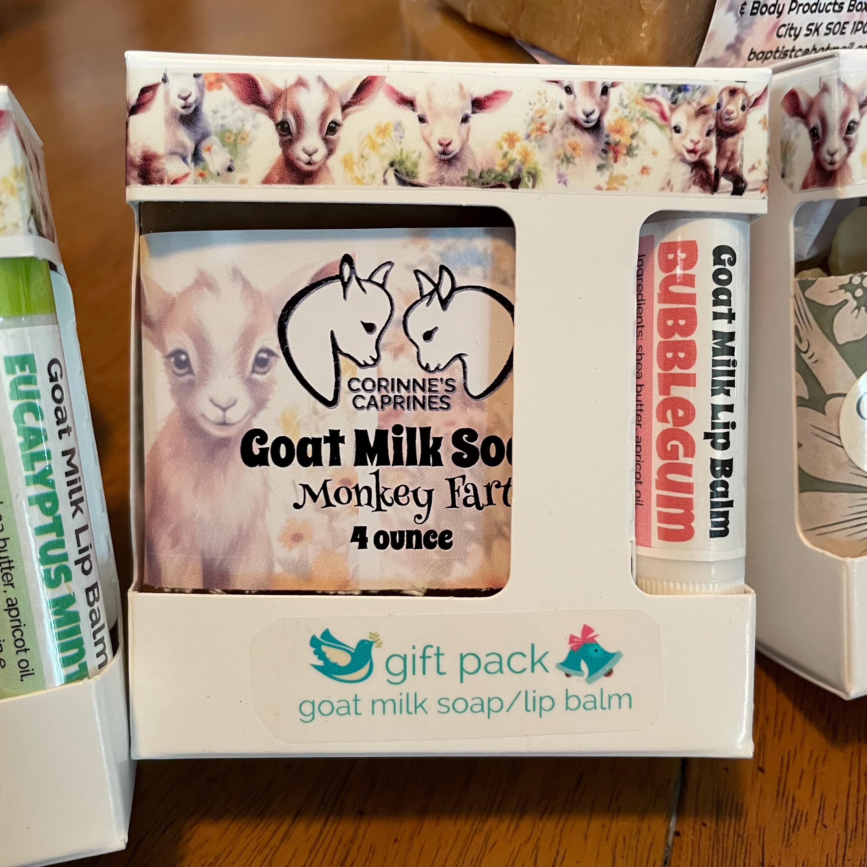 Goat milk soap and lip balm in a cute box for gifting or whatever you choose.